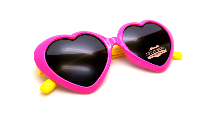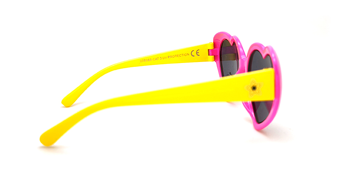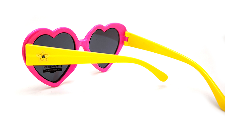 عینک آفتابی دخترانه مدل قلبی سیتی ویژن با طراحی فانتزی با فریم کائوچویی (سرخابی و دسته های زرد)