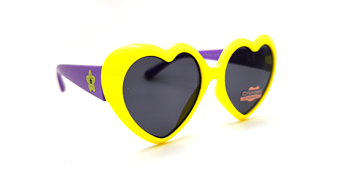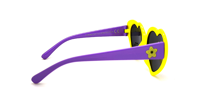 عینک آفتابی دخترانه مدل قلبی سیتی ویژن با طراحی فانتزی با فریم کائوچویی (زرد و دسته های بنفش)