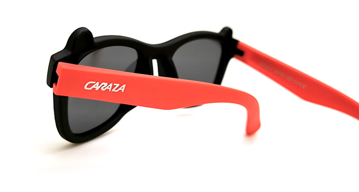 عینک آفتابی بچهگانه کارازا مدل ویفرر پلاریزه طرح قورباغه دورنگ با فریم مشکی مات و دسته های قرمز