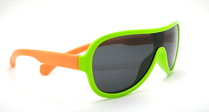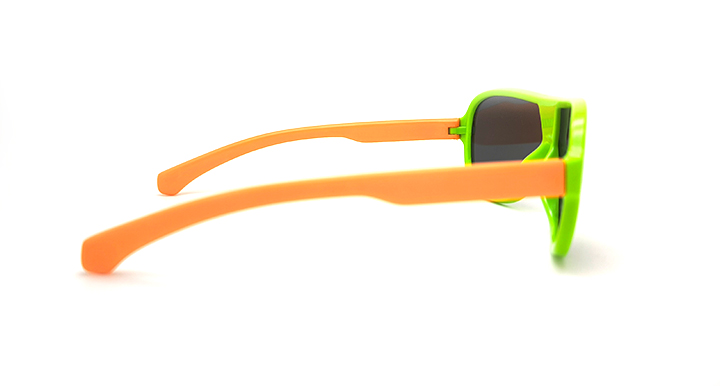 عینک آفتابی بچه گانه کارازا خلبانی به هم پیوسته پلاریزه دورنگ با فریم سبز و دسته های نارنجی