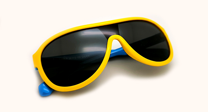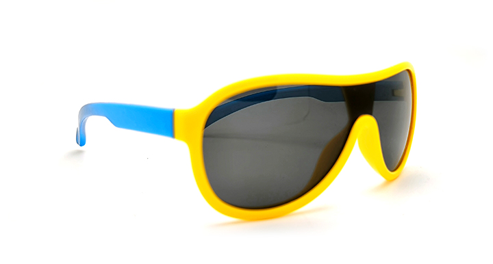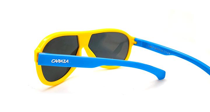 عینک آفتابی بچه گانه کارازا خلبانی به هم پیوسته پلاریزه دورنگ با فریم زرد و دسته های آبی