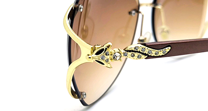 عینک آفتابی زنانه مدل روباه نگین دار بدون فریم سایه روشن قهوه ای