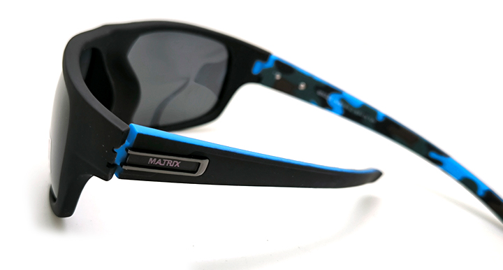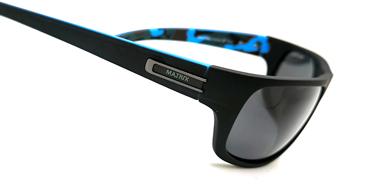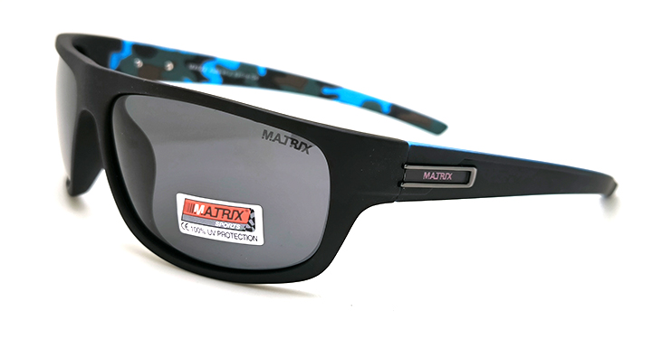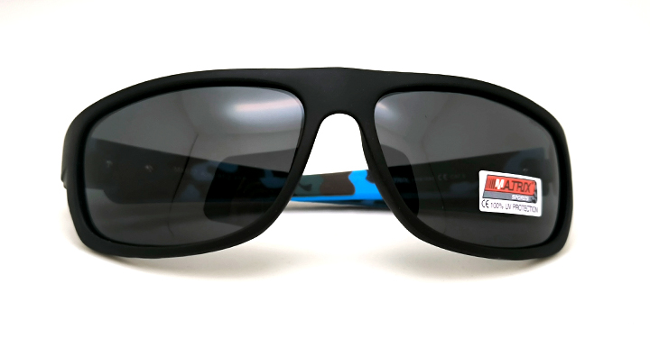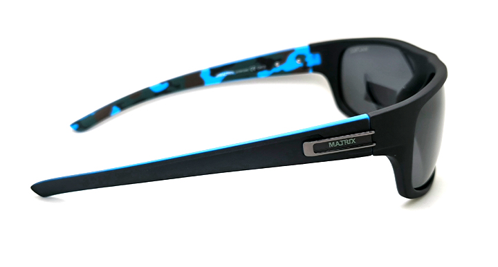 عینک آفتابی مردانه اسپرت ماتریکس Matrix با عدسی خاکستری پلاریزه و فریم مشکی مات و آبی چریکی